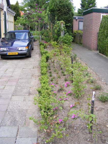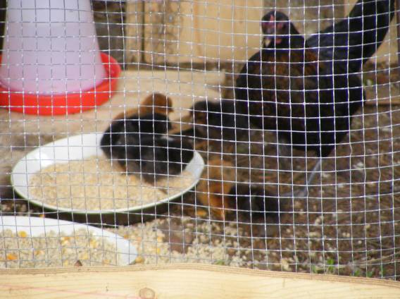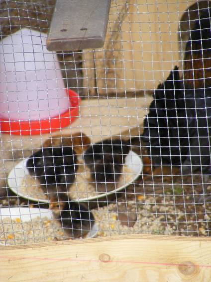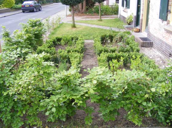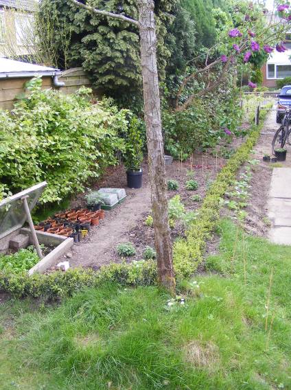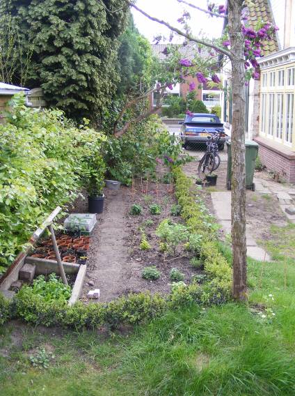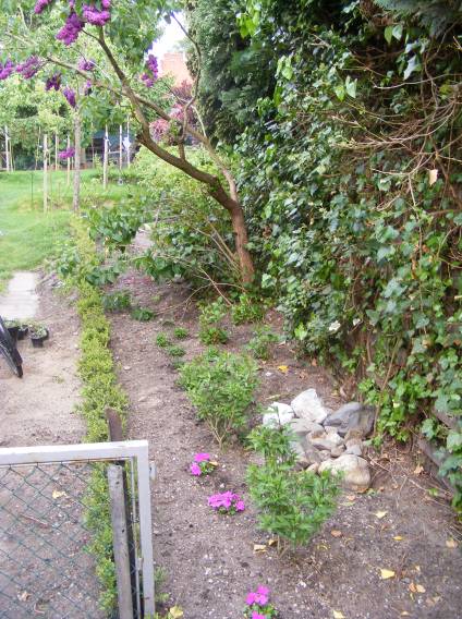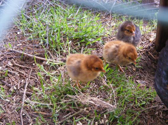 Kuikens en de tuin in blad en bloei